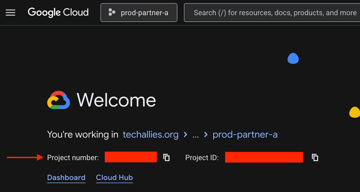 workload_identity_provider: '...'The workfload_identity_provider value here is in the format: projects/<PROJECT_NUMBER>/locations/global/workloadIdentityPools/<POOL_ID>/providers/<PROVIDER_ID>. Note that it’s asking for project number, not project ID. To find the project number, you can go to the Google Cloud welcome page and it’ll be displayed there.
